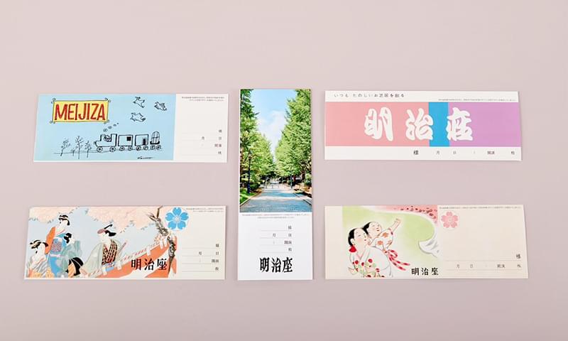 昭和20年代から昭和40年代まで使用していたデザインを復刻したチケット封筒を製作いたしました。封筒のデザインは全5種類!(※ランダムでのお渡しとなります)