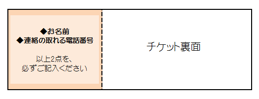 ご来場のお客様におかれましては大変お手数をおかけいたしますが、ご観劇日当日、お手持ちのチケットの半券(入口でもぎってご提出いただく小さい部分)に、お客様のお名前ご連絡のつきやすい電話番号をご記入のうえご提出をお願いいたします。