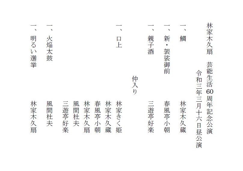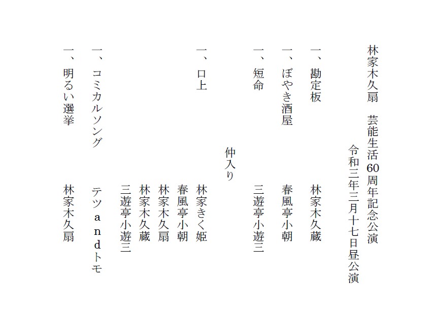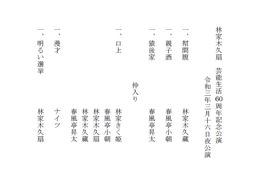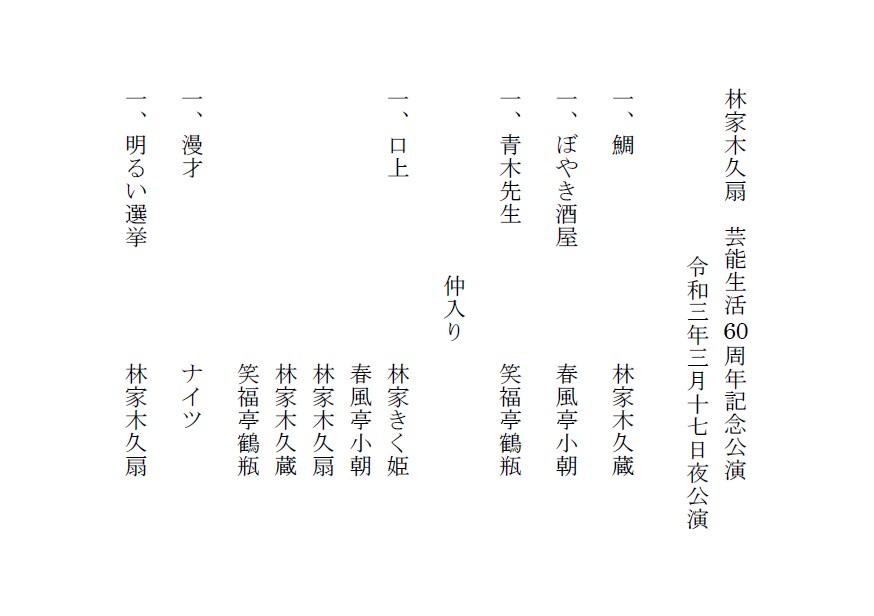 「笑点」でおなじみ林家木久扇の芸能生活60周年を記念し、 豪華ゲストを迎えて、至極の笑いをお届けします。