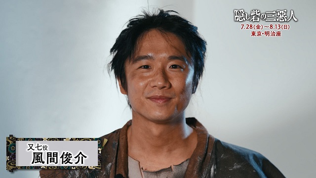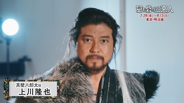 『隠し砦の三悪人』言わずと知れた、黒澤明監督の名作を、令和に舞台で皆様にお届けする。今、自分に、凄い事が始まると言い 聞かせております。国内外問わず、多くの作品に影響を与え、今も色褪せない『隠し砦の三悪人』の舞台に出演させて頂くので、背筋を正しつつ、目一杯楽しみたいと思っています。この作品に溢れる覇気や活力を、客席で直に体感して頂けたら幸いです。