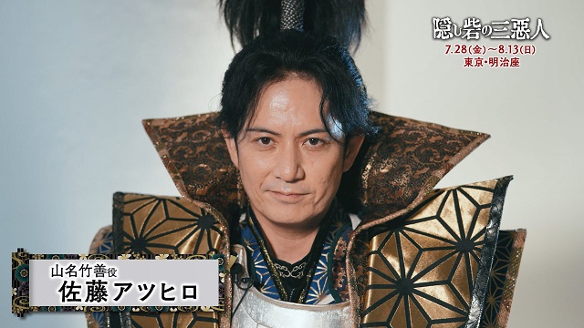 素晴らしいキャスト、スタッフとともに、歴史ある明治座で世界遺産ともいうべき名作『隠し砦の三悪人』の舞台化に挑めることを光栄に思います。完璧なる原作のストーリーはそのままに、映画ならではの表現を、生の舞台だからこその表現に、繊細かつ大胆に置き換えて、黒澤ヒューマニズムに溢れつつ血沸き肉躍る、王道を貫く大娯楽時代劇に仕上げたいと思います。