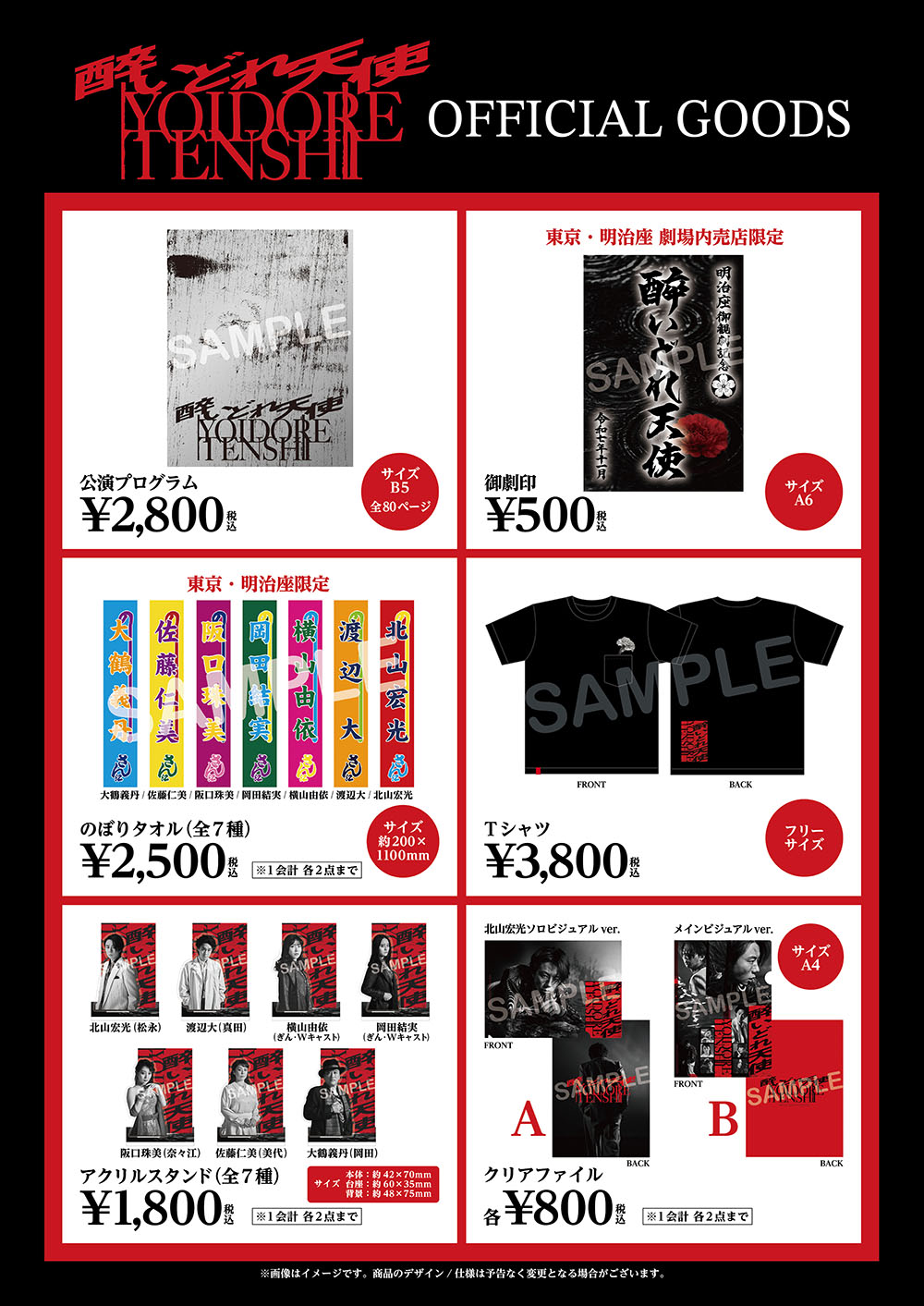 明治座での会場先行販売(※明治座公演初日のみ※時間未定)、もしくは『Online明治座横丁』での通販(※11月7日~12月14日オープン/2月下旬より順次発送予定)をご利用ください。各販売の詳細は、公演初日前にご案内いたします。