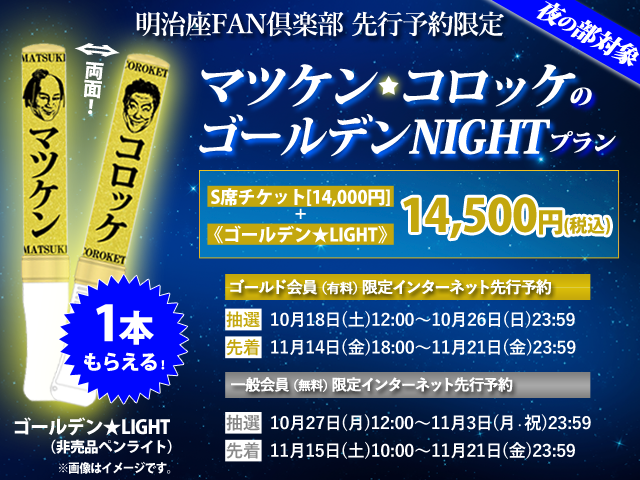 S席チケット(14,000円)+ゴールデン☆LIGHT(非売品ペンライト)⇒ 特別価格14,500円