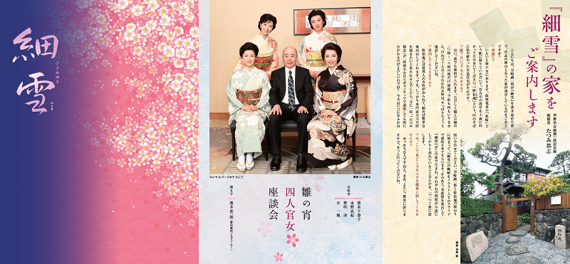 A4サイズ、カラー写真たっぷりの48ページ。劇場内にて好評発売中。 あらすじ/出演者紹介/蒔岡家四姉妹×酒井喜一郎スペシャル座談会/ 稽古場風景/谷崎潤一郎についてのコラムなど、盛り沢山な内容。 豪華出演陣による舞台の魅力をご自宅でもお楽しみいただける1冊です。 ご観劇の記念に是非お買い求めくださいませ。