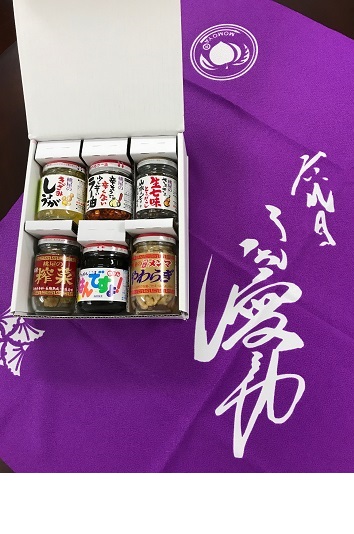 江戸紫地に、松嶋屋の家紋・愛之助のサイン・桃屋のロゴの、白抜き二巾風呂敷は数量限定。