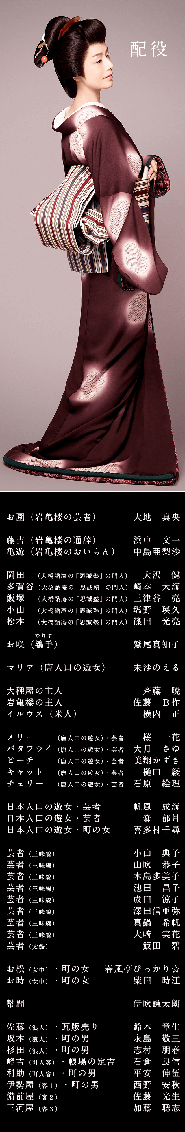 有吉佐和子先生が残された数多の名作の中でも、この作品には有吉作品の魅力が凝縮されて詰まっているように感じます。人間のおかしさ、哀しさ、いとおしさ、そして社会と時代に対する冷徹なまでの視線。それらを包み込んで、芝居通の有吉先生らしくあたたかい眼差しをもって描かれたからこそ、今も多くの人の胸を打つのではないでしょうか。主人公のお園はお節介で調子が良く、一市民として揺れ動く時代に利用されながらもたくましく生きる女性。それは大地真央さんの魅力にも通じるように思います。大地さんの明るさと華やかさ、三枚目ぶり、舞台に対するひたむきさと力強さ、そして美しさ――。今回は音楽劇としてナンバーも加え、大地さんの魅力を十二分に堪能していただける、これまでとは一味違った『ふるあめりか…』になればと思っています。大地さんならではのお園と、新しい『ふるあめりかに袖はぬらさじ』にどうぞご期待ください。