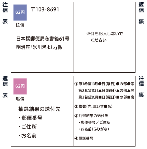 きよシートは一公演のみ承ります。なお、きよシートは大変高い倍率が予想されるため、第2、第3希望もお選びください。