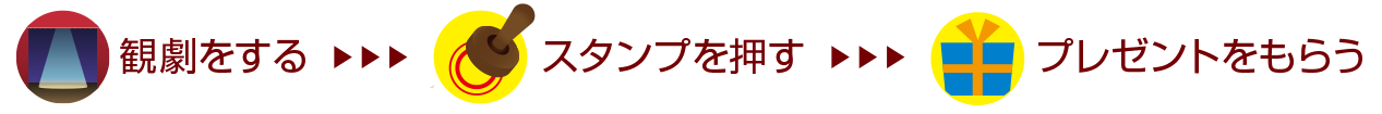 ご観劇ごとに、ご自身の観劇券とスタンプ台紙を持って、劇場内スタンプ専用受付にお渡しください。