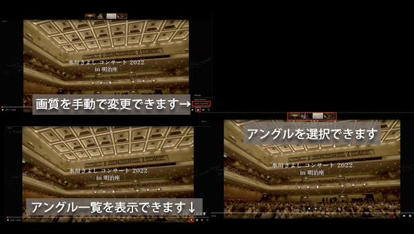 《マルチアングル配信》と《高音質+4K配信》の配信パターン2つをご用意。ご自宅でたっぷりとお楽しみください。