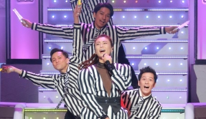終演後の舞台上にソムリエを招き、フランスワインの講義と氷川きよしら出演者がテイスティング に挑戦!