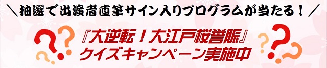 『大逆転!大江戸桜誉賑』リピーターチケット(S席1,500円引き)を、インターネット予約「席とりくん」でご購入いただいたお客様には、クイズのヒントを特別公開!
