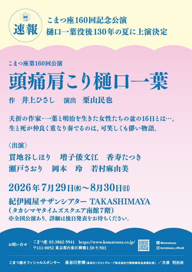 他劇場公演2026年7月29日(水)~8月30日(日)こまつ座第160回公演『頭痛肩こり樋口一葉』こまつ座160回記念公演