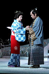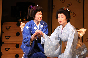 テレビの脚本は橋田壽賀子、舞台化の脚本は田井洋子、昭和五十五年に帝国劇場で初演された。明治座では、平成十八年にはじめて上演した。つまり、長い歳月をかけて、練りあげてきた作品を、今回明治座創業一四〇周年記念の第一弾として、取りあげたのである。浜町公園脇の明治座からほど近い場所に両国橋があり、すこし下流には引揚げた一行が渡った永代橋がある。劇中二回もこの永代橋の場が出てくる。余談だが、仇討の引揚げ当日(十五日早朝)は諸大名が城中へ行列して出向く式日に当っていたので、不測の事態を避けるために両国橋を永代橋に変更したのである。