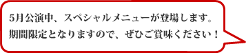 ■「早乙女太一×明治座」 5月公演スペシャルメニュー登場!