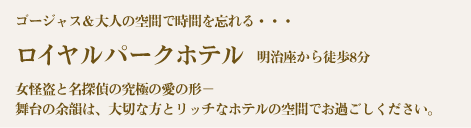 観劇の行き帰りに、ちょっと日常を離れた世界を演出したい。
