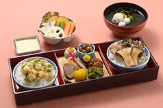 今月は実りの秋にふさわしくキノコ・里芋・さつまいもなど、秋の味覚を楽しめる彩り鮮やかな御膳になりました。