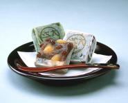 あずきと抹茶のあっさりした風味の水ようかんを流し固めました。