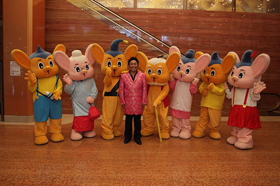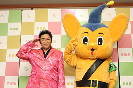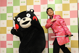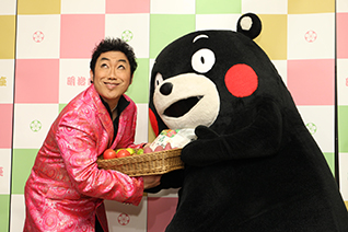 本公演を明治座と共に盛り上げる熊本県を代表し、くまモンが応援に駆けつけました。くまモンから、熊本県の名産品、