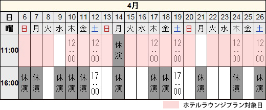 公演期間中(4月6日~26日)の全日程 |