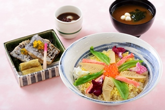 5月の献立は、夏の旬魚の太刀魚の菜種焼きと、初夏を彩る華やかな穴子ばら寿司です。寿司ご飯の中には刻んだくるみを混ぜており、ふわっとした穴子と香ばしいくるみの食感を是非お試し下さい。
