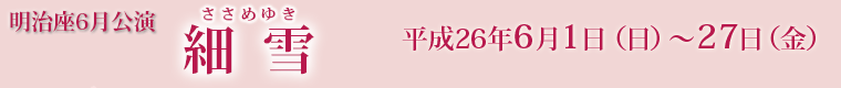 2001年以来現在も放送中。舞台「細雪」は2011年(帝国劇場・全国ツアー)、2012年(御園座)に三女・雪子役で出演。