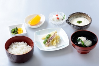 6月は初夏のさっぱりとろろご飯と穴子天麩羅の御膳です。 スタミナ抜群のとろろご飯に旬魚「はも」や茗荷の天麩羅、素麺のお椀なども併せてお楽しみ下さい。