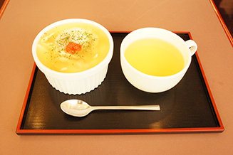 ・絹さや・花麩・壬生菜漬け・白玉ぜんざい・十六穀米・加薬ご飯