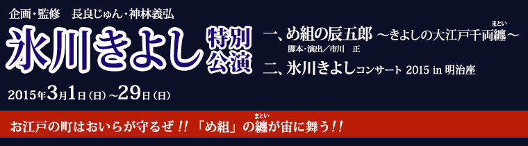 「め組の辰五郎~きよしの大江戸千両纏(まとい)~」「氷川きよしコンサート 2015 in 明治座」の2本立て。