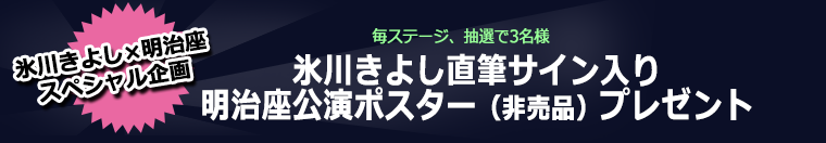「氷川きよし直筆サイン入り明治座公演ポスター(非売品)」をプレゼント。