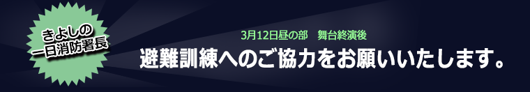 3月12日昼の部終演後、一日消防署長委嘱式が開催されます