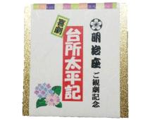 華やかなお芝居の余韻を輝く小箱に詰めて・・・お日持ちするので梅雨時も安心です。親しい方へのちょっとしたおみやげにどうぞ!