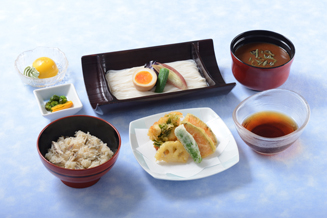 6月は初夏を迎える季節らしくさっぱりとした素麺をはじめ小柱のかき揚げやカボチャの天ぷらなど、