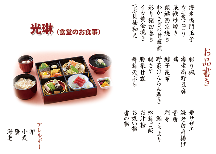光琳(食堂のお食事) アレルギー:卵・小麦・蟹・海老