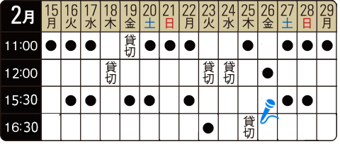 | 第一幕 | 11:00~12:05 | 第一幕 | 15:30~16:35 |