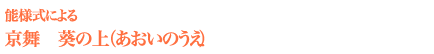 今回は、能と京舞が渾然一体となった上演形式で、井上八千代以外の出演は、全て能楽師で、間狂言も入り、演奏も地歌だけでなく、地謡や能の囃子が入った豪華な演出となっていて、大変珍しいコラボレーションでご堪能頂きます。
