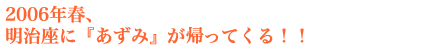 2005年4月、明治座を連日熱い興奮とすすり泣きで包んだ「あずみ」の再演が決定!