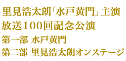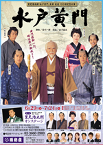 2007年7月公演 里見浩太朗「水戸黄門」主演 放送100回記念公演 第一部 水戸黄門 脚本: 宮川一郎 演出:金子良次 出演: 里見浩太朗 原田龍二 合田雅吏 由美かおる 野村将希 松井天斗 他 高松藩を治めるご老公の実子・松平頼常が御禁制である大船の建造を企て、謀反の疑いありと不穏な報せ。 ご老公は真偽を確かめるために四国へと旅立つ。 旅を急ぐ一行に、ご老公を亡き者にせんとする柳沢吉保の刺客が襲いかかる。 果たしてその真相とは・・・? 第二部 里見浩太朗オンステージ 構成・演出:風間太郎 演出:片山鉱二