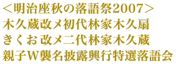 2007年9月公演 <明治座秋の落語祭2007>木久蔵改メ初代林家木久扇 きくお改メ二代林家木久蔵 親子W襲名披露興行特選落語会