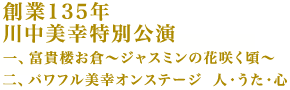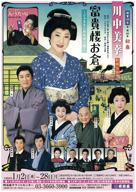 2008年1月公演 創業135年 川中美幸特別公演 一、富貴楼お倉~ジャスミンの花咲く頃~ 二、パワフル美幸オンステージ 人・うた・心