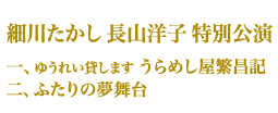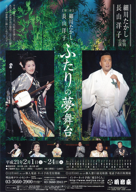 2009年2月公演 細川たかし 長山洋子 特別公演 一、ゆうれい貸します うらめし屋繁昌記 二、細川たかし 長山洋子 ふたりの夢舞台
