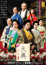 2011年10月公演 大奥 第一章 スタッフ・キャスト 原案: フジテレビ系ドラマ『大奥』より 脚本: 浅野妙子 演出:林 徹(フジテレビ) 音楽: 石田勝範 出演: 松下由樹 木村多江 原田龍二 田中幸太朗 西原亜希 鷲尾真知子 山口香緖里 近藤正臣 ほか 大奥の黎明期― 三代将軍家光の乳母・春日局と実母・お江与の、 女の戦いと波乱の生涯を描いた豪華絢爛の時代絵巻。