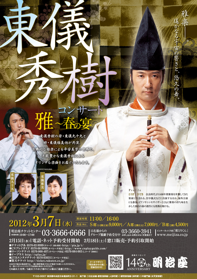 B席3,500円(3階正面) C席(3階左右)2,000円 - 電話・インターネット予約:3月13日(火)10:00から